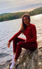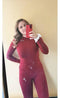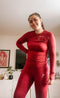 Behagelig og lett langermet jeg har lett etter for å gi meg selv en følelse av myk komfort etter en utmattende trening. Dyp kirsebær-rød gir et løft til humøret. Også flott for reise :) Takk!